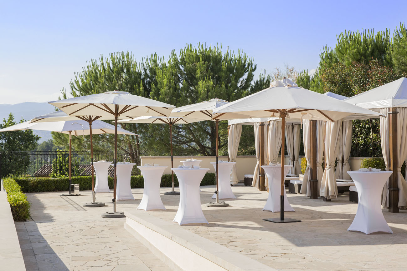 Choisissez votre salle de mariage parmi une sélection d’espaces modulables à l’esthétique soignée. Vous rêvez d’un grand événement ? Le somptueux Salon Fayence accueille jusqu’à 200 invités dans une ambiance lumineuse et raffinée. Adossé à une vaste terrasse privative, il offre un panorama spectaculaire sur les collines du Pays de Fayence. Pour une atmosphère plus intimiste, les salons Tourrettes, Montauroux ou Callian révèlent leur charme aux invités de votre fête de mariage.